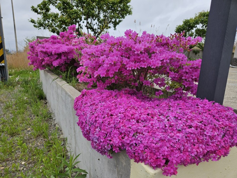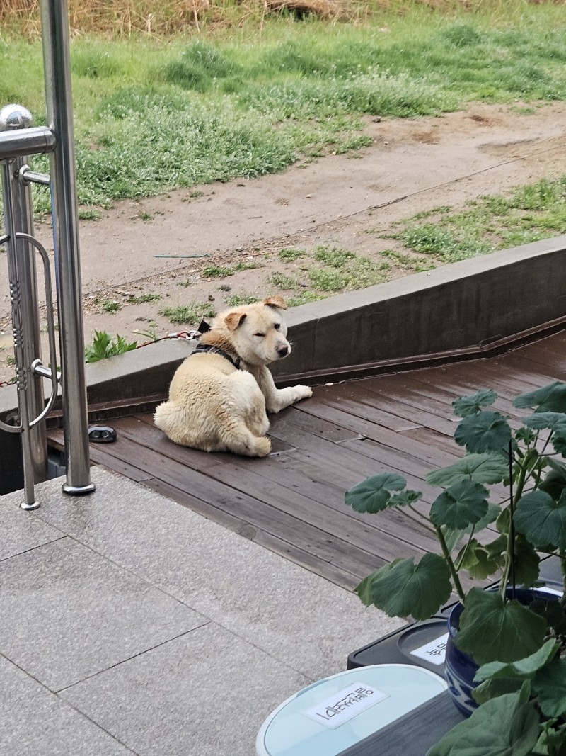 봄비가 오고 화단의 꽃이 활짝 피었습니다. 청이는 비가 온다고 저렇게 통로에 걸터앉아 있습니다.